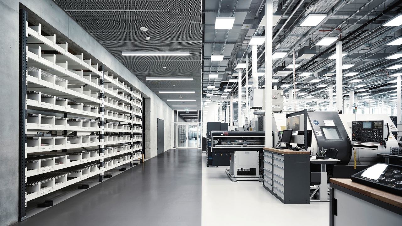 Stefan Ihnen, Associate Director of R&D at IWC Schaffhausen, adds that the new manufacture is a great improvement over the old, rather fragmented setup that meant people or components sometimes having to go to another building entirely. “It’s really a significant advancement in communication, enabling different areas to engage more directly,” he explains. “We can organise side-by-side shop floor meetings and be more efficient and cohesive.”