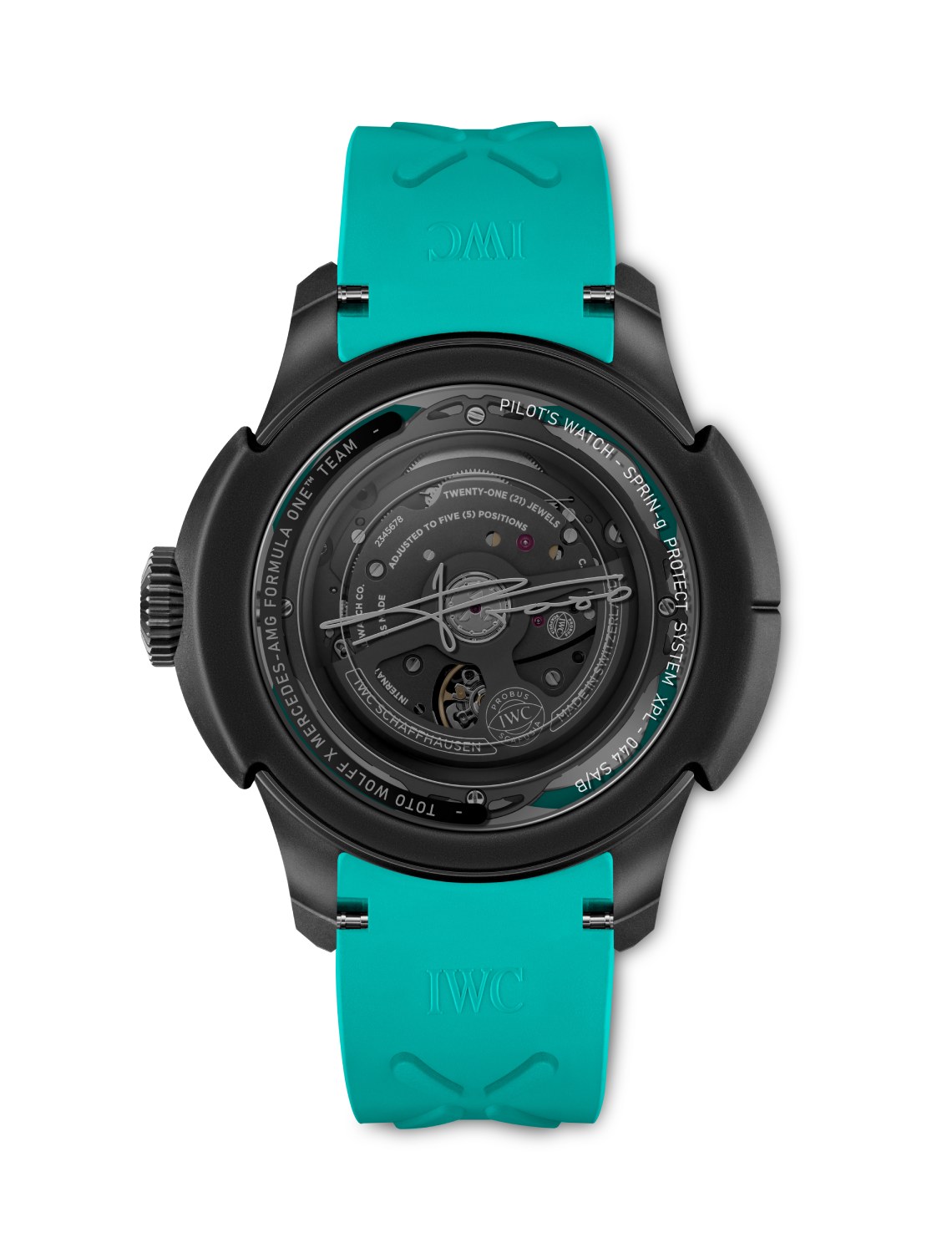 Meanwhile, the transparent sapphire caseback, etched with Wolff’s signature, reveals the robust movement within—an in-house automatic calibre that guarantees top-notch precision and up to 120 hours of power reserve. It’s a high-performance engine that more than lives up to its namesake team and competition.