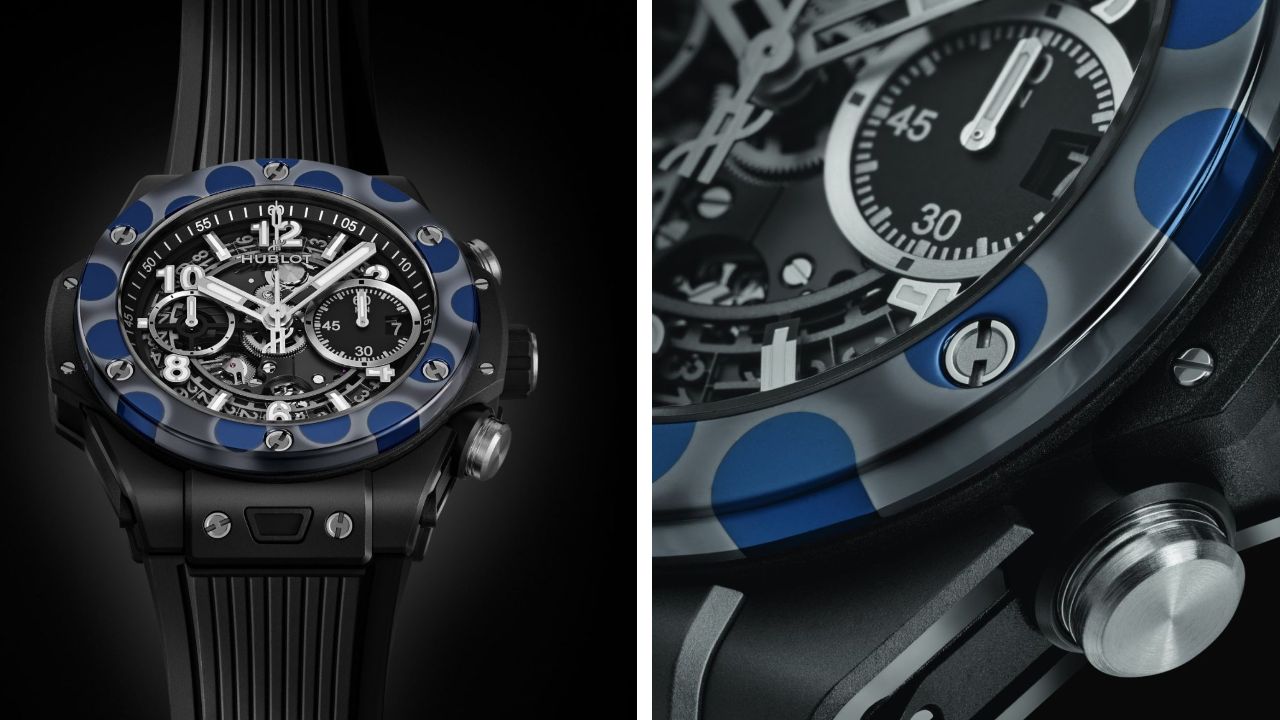A splash of colour on the bezel; a giant leap for modern horology. Casual observers may perceive the new Big Bang Unico Magic Ceramic, accentuated by an eye-catching dark grey bezel decorated with rich blue polka dots, as a typically bold and fun watch from Hublot. To those within the brand and industry insiders, however, the timepiece represents an immense achievement that nudges Hublot ahead in the arena of experimental watchmaking.