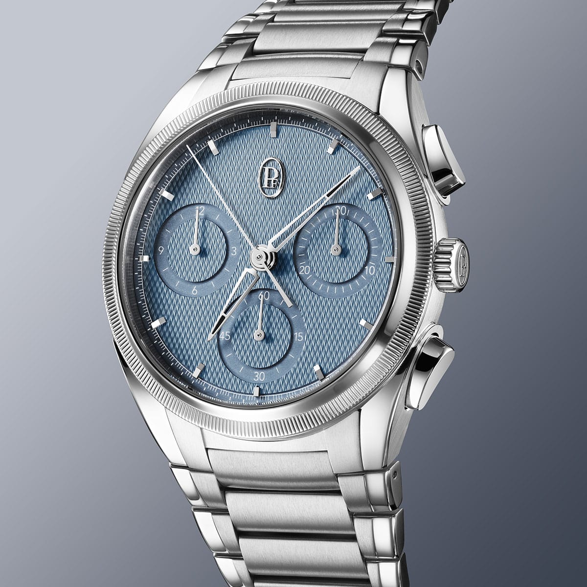The Tonda PF Chronograph has lost its date—to the delight of the purists—and with it, has seen its overall diameter shrink from 42mm to 40mm—also, to the delight of the purists. Two millimetres is a lot in watchmaking terms, and this reduction in size and weight makes it that much easier to wear—which is especially significant for a dressy, bracelet sports watch that is meant, indeed, to be worn anywhere and everywhere. The lack of date also makes it seem that little bit more unconcerned, which pairs well with the mineral blue dial (RM163,800). Its steel case is about 12.7mm in thickness, while the COSC-certified automatic calibre has a 65-hour power reserve.