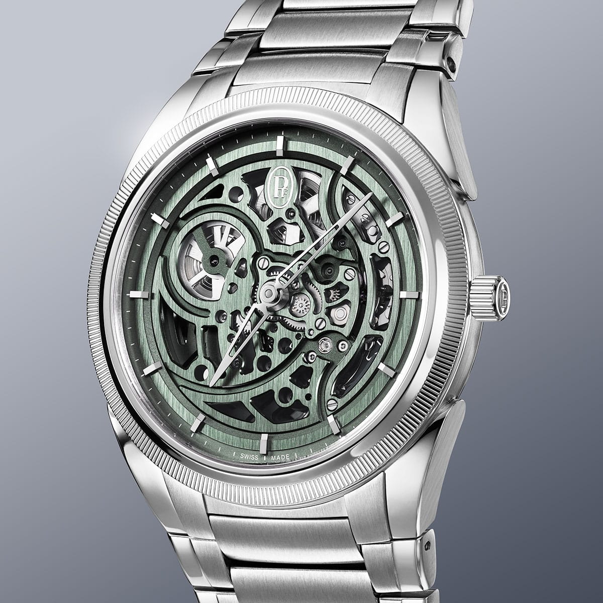 The Tonda PF Skeleton has been a looker from the start, with the complex geometry and brushed texturing of its openworked dial channelling a modern take on skeletonisation—and an excellent example of Parmigiani Fleurier’s exacting standards of finishing. Last year, it grabbed attention with Milano Blue in a platinum case; this year, it does so with Slate Green in a steel case, limited to 50 pieces (RM337,900). It measures 40mm in diameter and is exceptionally slim at only 8.5mm in thickness.