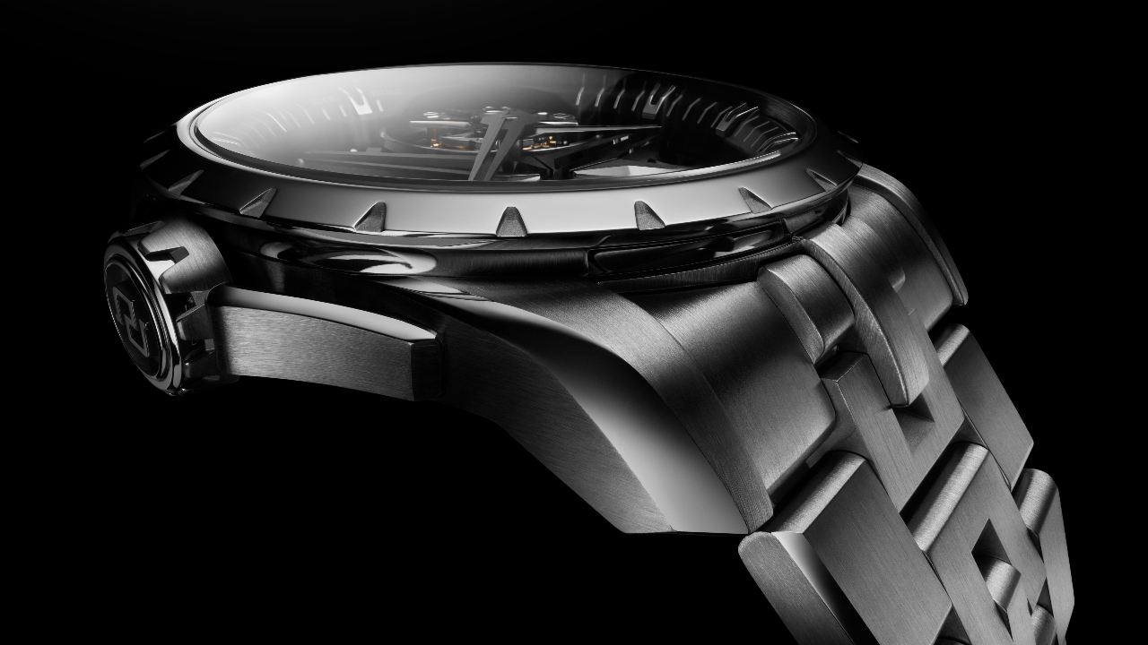 One of his favourite memories is when that debut tourbillon was first presented as a working version. “Mr Dubuis wanted to have a very big tourbillon cage, to have a large inertia, for two reasons,” Bruttin recalls. “One, for the shock resistance, because you have strong torque which is good for that. And the second one is for magnetic resistance. It was also easier to start with a big hairspring. The consequence of that was the sound of the tourbillon—a big tick-tock, very loud. Today, it’s the signature of the brand. And when I heard this first tick-tock—it was very strong, very surprising. It’s like starting a Lamborghini.”