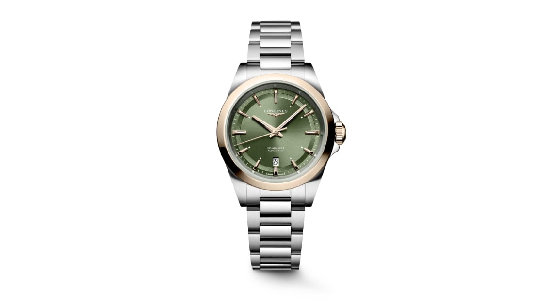In celebration of its 71st anniversary, the Conquest introduces four distinct sizes that combine bold, timeless style with versatility. The collection kicks off with the elegant 30 mm model, available in stainless steel and gold, featuring a bezel capped with 18K rose gold and an 18K rose-gold crown.