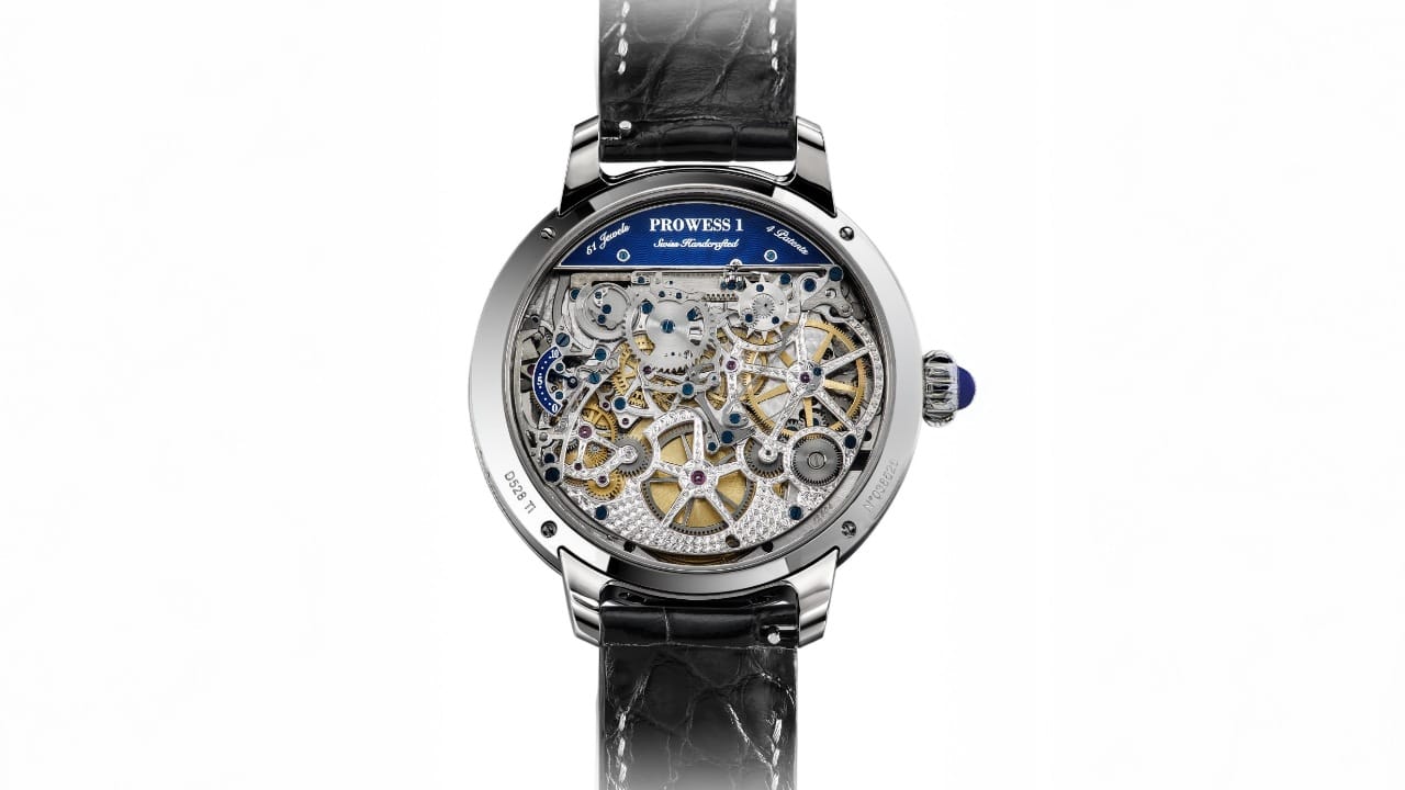 The Prowess 1 is not a limited edition, but the complexity of its manufacture is such that only eight pieces can be made each year. It is 46mm in diameter and is offered in three case materials—red gold, platinum, or titanium. “This is truly innovative, never been done, and is really bringing something to watchmaking history,” Raffy says. “This is the Prowess 1.”