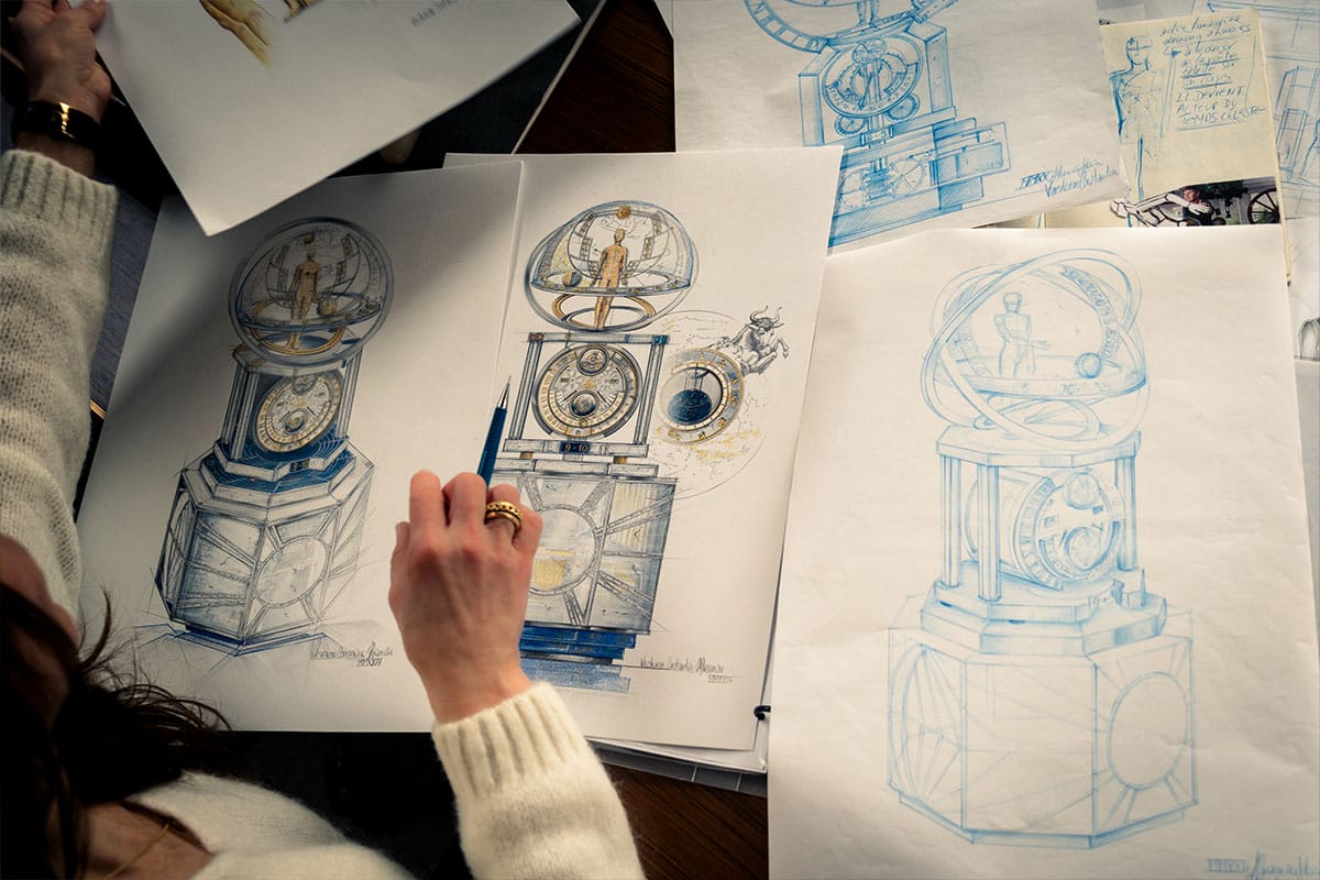 It is accurate to describe it as an astronomy-inclined clock with an automaton and a music box. Yet, this feels like a massive undersell. It stands more than a metre high, for starters, a mystical and intricate edifice that seems like it should only exist as a movie prop that only ‘works’ via special effects. But rest assured that La Quête du Temps is a fully functional ode to mechanical artistry, told via 6,293 components. It was seven years in development, with 15 patents involved in that.