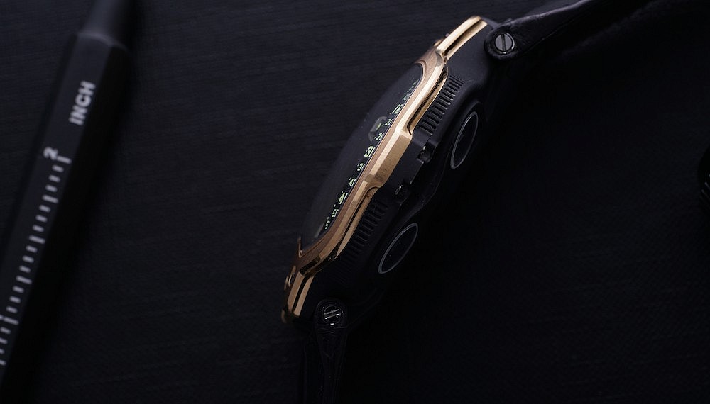 Crafted in limited edition, 18-karat pink gold – Iron Man’s signature colour – and PVD-treated titanium, the automatic wristwatch (complete with an alligator strap) even appeared as a functional gadget for Iron Man in one memorable scene. Within this asymmetrical watch sat a brilliant take on the wandering hours complication, complete with satellite time display, day/night indication, and oil change indication, while its limited edition and numbered status rendered it all the more more attractive and collectible.