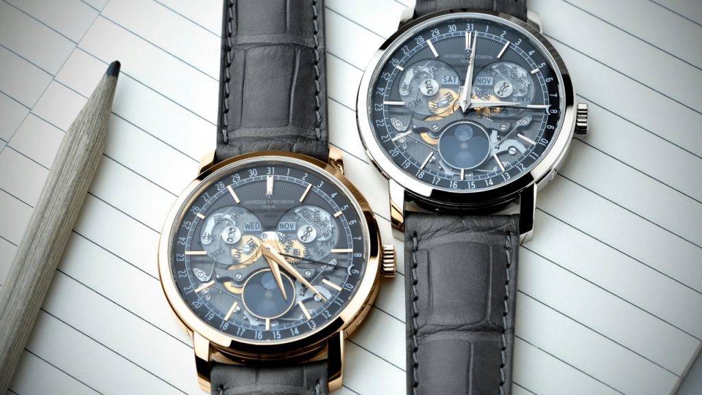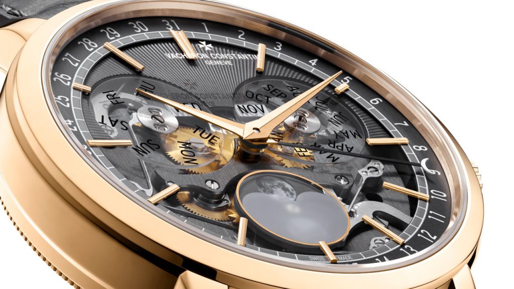 While it is a big departure from the earlier iteration of the company’s Traditionnelle Complete Calendar, it isn’t an entirely new design for Vacheron. Fans of the brand will recognise derivative designs from the watchmaker’s Traditionnelle Twin Beat Perpetual Calendar, which also sported sapphire-crystal discs, slate gray guillochéd segments on the dial, openworked elements and a fluted caseback mirroring the guilloché on the front. Collectors who couldn’t get their hands on the original winning design will now have a second shot, albeit in a different model.
