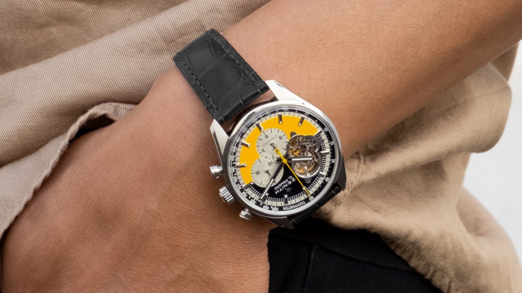 As one of the most iconic cigar brands in the world, Cohiba needs little introduction. Five years ago, on the occasion of its 50th anniversary, a collaboration was announced between Cohiba and watchmaker Zenith – creator of the legendary1969 El Primero movement. It was a seismic moment in watchmaking – an ambitious construction which set a new standard for chronograph accuracy measuring up to 1/10th of a second. This accomplishment was possible as a result of the El Primero’s (meaning ‘the first’ in Spanish) higher frequency or beat-rate, at 36,600 vibrations per hour vs the more standard variations of 19,800/21,600 of the day. This year, Zenith celebrates the 55th anniversary of Cohiba with a 55-piece limited edition Chronomaster Open. The 42mm stainless steel timepiece is reimagined with immediately recognisable Cohiba colours and design. On the dial, the saffron yellow, white and black-chequered motif of its paper bands appear. Yellow chronograph seconds hands add to the aesthetic fluency of the piece, finished with a black alligator leather strap and protective rubber lining.