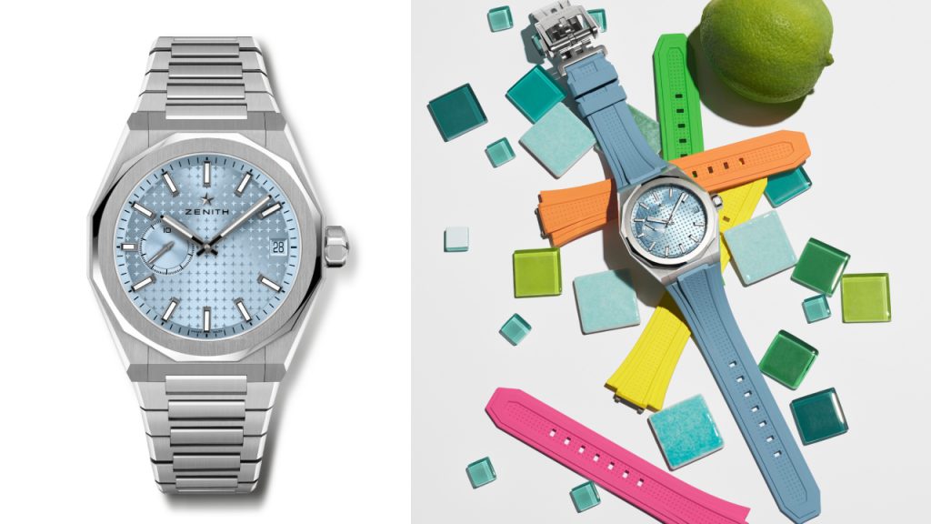 Zenith’s playful new ice blue Defy and strap collection are the perfect way to add a touch of summer to your wrist whether you’re enjoying a staycation or travel. The Defy Skyline 41 Ice Blue is available today exclusively in Zenith’s online boutique.