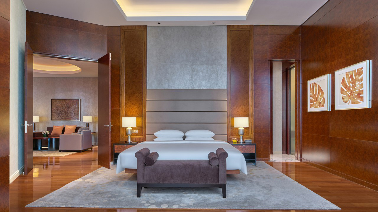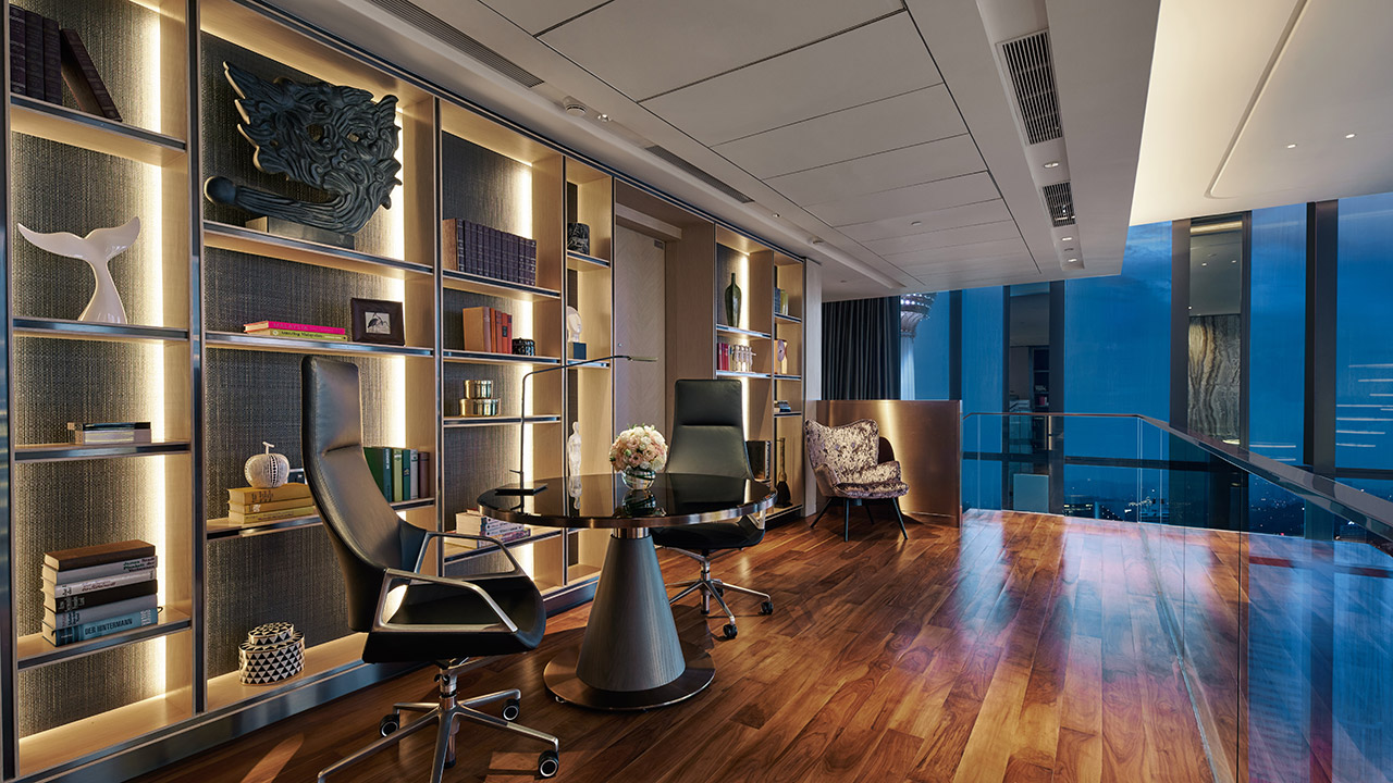 Located in the bustling Bukit Bintang area, The Ritz-Carlton Suite (RM10,500) uses an elegant contemporary design to seamlessly blend work and relaxation areas across 250 square metres. Touches the likes of pocket doors, mirror finishes and dark wood hems add elegance to the suite’s spaces. A stay The Ritz-Carlton, Kuala Lumpur wouldn’t be complete without its legendary 24-hour butter service to tend to your needs as your make use of the suite’s bedroom with its en-suite full marble bathroom, recently redesigned workstation, powder room, living room and dining area.