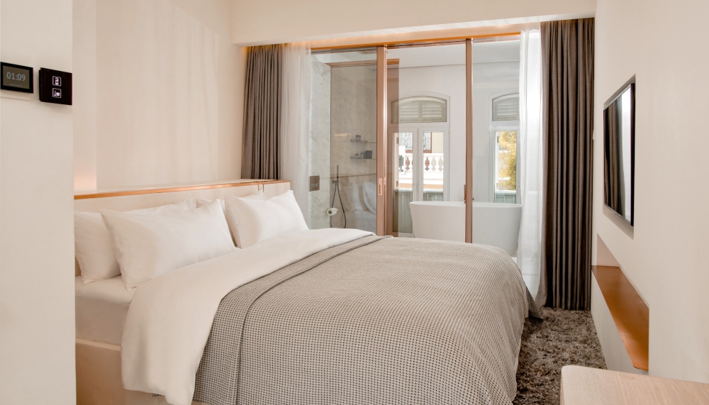 The new luxury boutique hotel that is 88 Armenian is full of bold moves: beside its exposed original brick walls, you’ll find burnt wood elements and lavish splashes of copper in the form of a single-piece bar counter and Tom Dixon Etch lamps in the airwell. The three-storey hotel houses only six deluxe suites (which range from RM750 to RM1,300 per night), and each one comes with an ensuite bathroom featuring a natural stone bathtub, Aesop amenities, and an abundance of Italian marble.