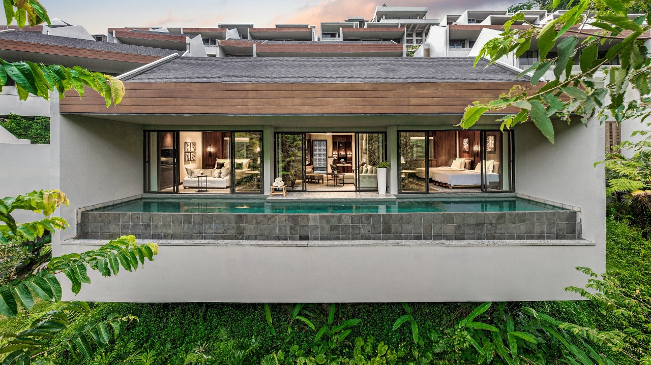 The resort’s architecture is a modern take on Indonesian style, drawing on Hindu and Javanese influences using natural materials. Wooden lattices, stone reliefs and water features are integrated throughout the property, while decorative motifs such as figurines and batik fabrics are reimagined in contemporary forms—all intentionally crafted to reflect the symbolic qualities of Ubud. At the front lobby, the sounds of Balinese gamelan (traditional Indonesian orchestra) emanate from a specially designed kinetic sculpture by conceptual artist Aaron Taylor Kuffner, which serves as one of the first cultural touchpoints upon guest arrival.