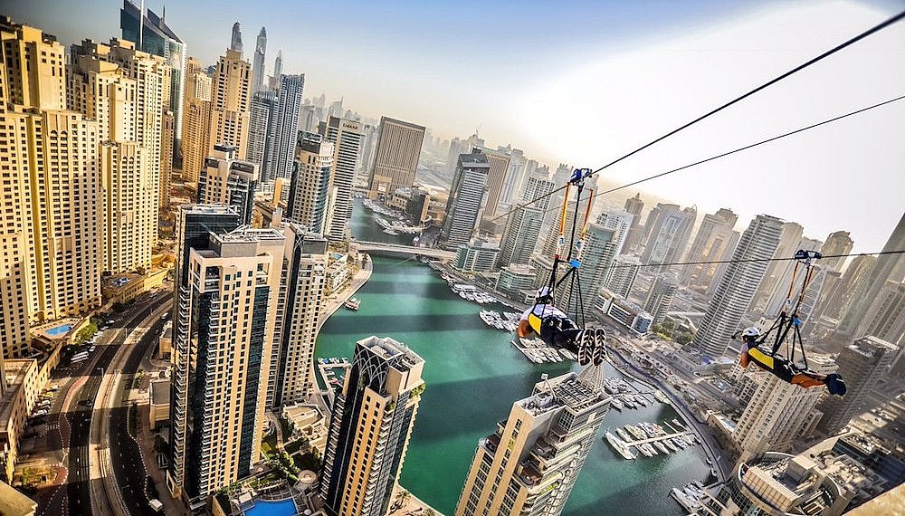 Ever fancied viewing the awe-inspiring forest of skyscrapers that is Dubai from a different perspective? The XLine has the answer to that question. At 170m tall and stretching almost a kilometre between the Amwaj Towers to the Dubai Marina Mall, the new XLine is not for the faint-hearted, with participants flying through the air at speeds averaging 80 km/h over an incline of 16 degrees. It is the longest zip line in the world in an urban environment, and one of the longest zip lines ever built.