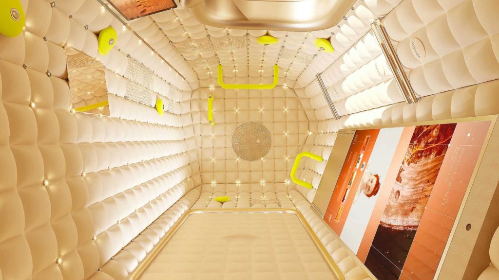 The crew module, which will double as the hotel, features décor by noted interior designer Philippe Starck. The cabins will offer plush padded walls and furnishings, futuristic colour-changing LEDs and panoramic views of our home planet that’s some 250 miles away. The exterior modules will be built by European aerospace company Thales Alenia Space, who also constructed approximately half of the modules for the ISS, while the interiors will be manufactured in Houston.