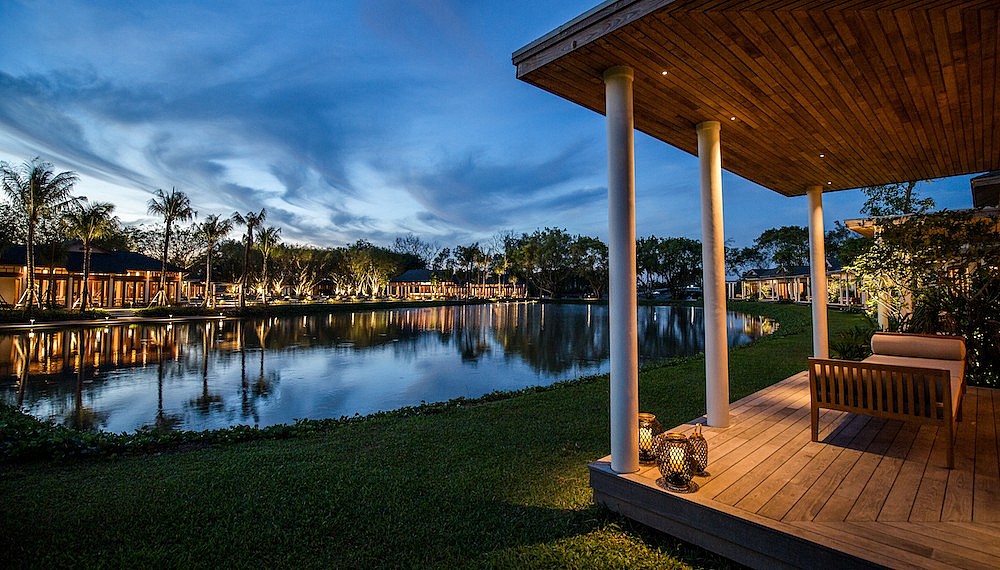 Low-slung and designed to resemble a colonial village by French-Canadian architect Pascal Trahan, the 60 villas are arranged around a central lake. With generous verandas and high-pitched roofs, the villas might seem invariantly luxurious at first glance, but subtle touches – woven rattan panels and lamps shaped like fisherman hats – anchor the dwellings with a sense of locale. Common buildings follow the same concept; from the Azerai Spa to the well-equipped gym, the spaces are quietly embellished only to a point where it adds character, but does not overwhelm. Personality, however, appears on the menu at the resort’s two restaurants, which serve faithful interpretations of Vietnamese cuisine – including the local favourite hot pot – as well as an international selection that includes mouth-watering grilled meats and fresh seafood.
