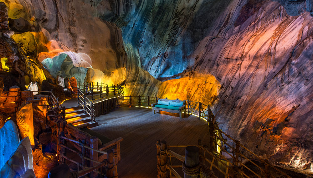 At Jeff’s Cellar, the restaurant resides in a natural cave, which offer you a study of the long and meticulous process of nature’s work in the towering stalactites, whilst a secondary cave becomes the natural choice for storing some phenomenal labels such as Chateau Lafite and Chateau Margaux. Here, a tasting menu (RM700 per person) lets you partake in Osetra caviar on blinis, foie gras on brioche, lobster risotto and M9 Wagyu sourced from Australia’s Margaret River. Should you prefer to make your dining experience more private, the resort’s recent Dine & Dream packages puts out a lavish food presentation by the geothermal lake, on an alcove with a panoramic view or in the comfort of your villa. A chef in attendance grills all manner of seafood and meats as you luxuriate in the extraordinary ambience, one which restores you to the equilibrium of perfect harmony with nature.