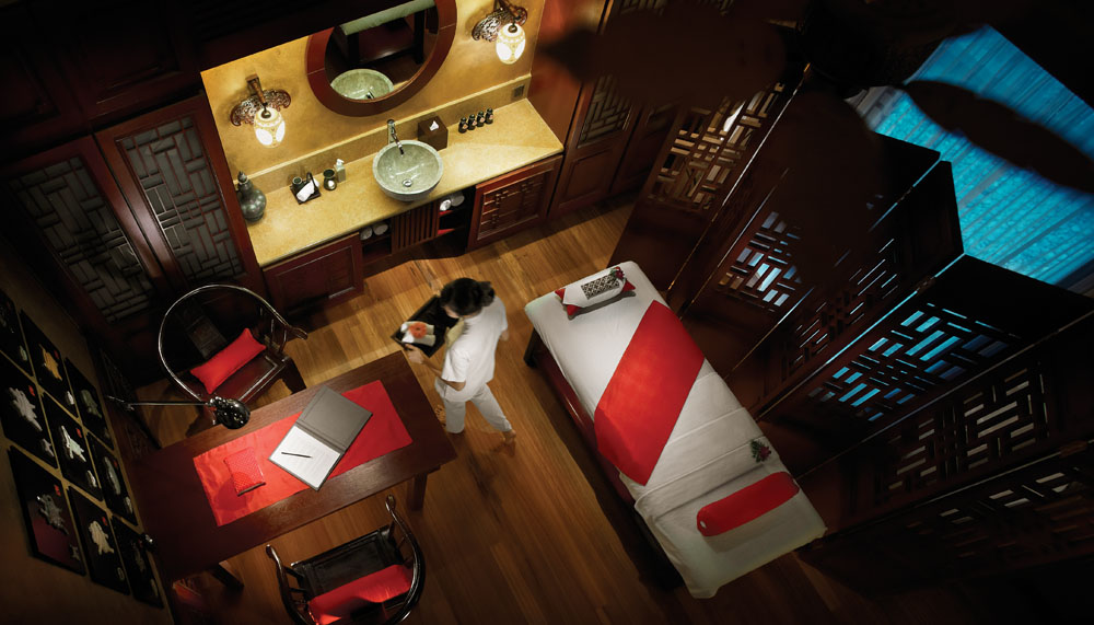 This place’s focus on well-being is exemplified by a detailed spa menu, centred on optimising relaxation through the practised hands of its therapists. Its spa manager Dr Shekhar Pathak is adept in Ayurvedic wellness, with his PhD coming from yoga philosophy. Here at the spa, guests may sign up for consultation on detox, longevity, rejuvenation, weight management, traditional Chinese medicine and fitness. This wisdom is allied by a comprehensive suite of treatments ranging from acupuncture (RM350), ayurvedic massages and the famed Malay Ramuan spa journey (RM795 for 180 minutes) which takes you through wraps, compresses and deep cleanses. The Banjaran signature massage (RM560 for 90 mins) is an amalgamation of the eastern practices beginning with an Indian head massage, traditional Malay ‘urut’ (massage) and Chinese pressure point foot therapy.