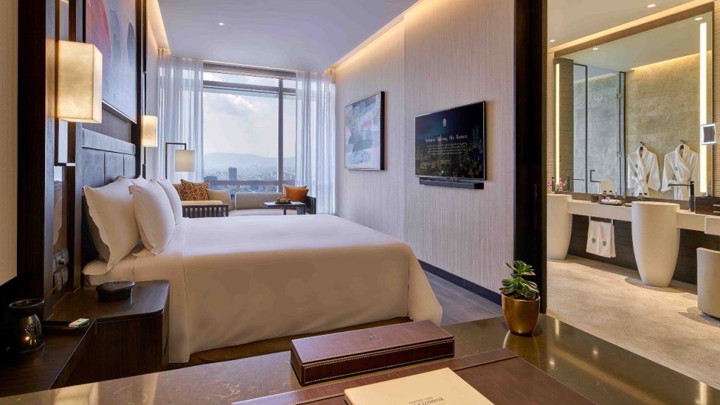 Above all, it’s impossible not to de-stress and decompress at Banyan Tree Kuala Lumpur, which serves as a surprisingly tranquil retreat despite being located at the very epicentre of the city. The Signature Wellbeing Retreat room, with its burnished singing bowl, selection of sleep-enhancing music, and thoughtful nightly rest rituals (including a steaming-hot inhalation bowl scented with kaffir lime leaves) makes sliding into bed before midnight a treat, rather than a task. In the morning, there’s a generous amount of floor space left clear to use the in-room yoga mats and stretch bands for a morning workout before heading up to the 58th floor for breakfast overlooking the Twin Towers.