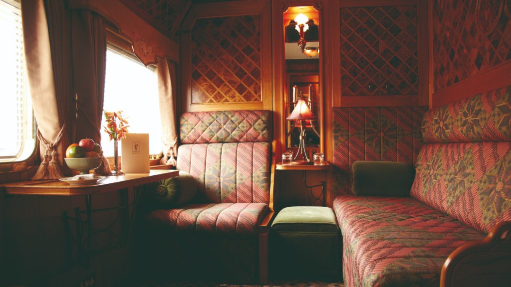 The train comprises eight sleeping cars, two restaurant cars, a swanky Piano Bar Car, and the open-air Observation Car. There are three different cabin categories—Pullman, State, and Presidential—that each feature private bathrooms and air-conditioning. The Presidential cabin is distinguished by additional space, a large bathroom, flashy gold accents, and extravagant embroidery. Its guests receive a fruit basket, caviar, and flowers upon boarding, plus free-flowing Champagne throughout the trip.