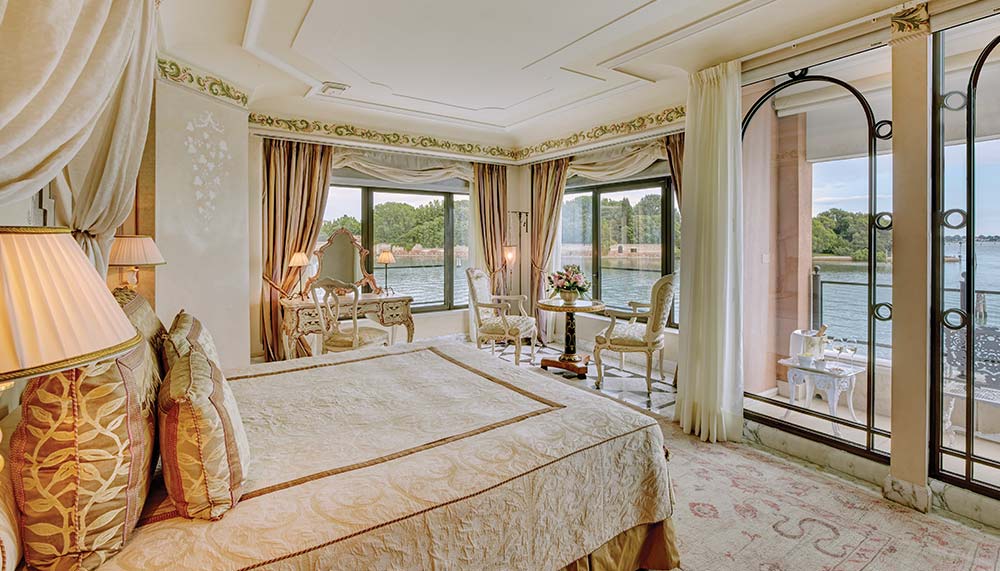 The ultra-opulent Palladio Suite (a two-bedroom suite from €9,350/RM43,775 per night) boasts floor-to-ceiling windows that present a 180-degree panorama of the lagoon in all its glory, which you can also make the most of from either of the suite’s two marble bathrooms or its splendid dining area. At the same time, it affords an unparalleled level of privacy, with a private dock and a large terrace (complete with an outdoor heated plunge pool) concealed by scented jasmine bushes.