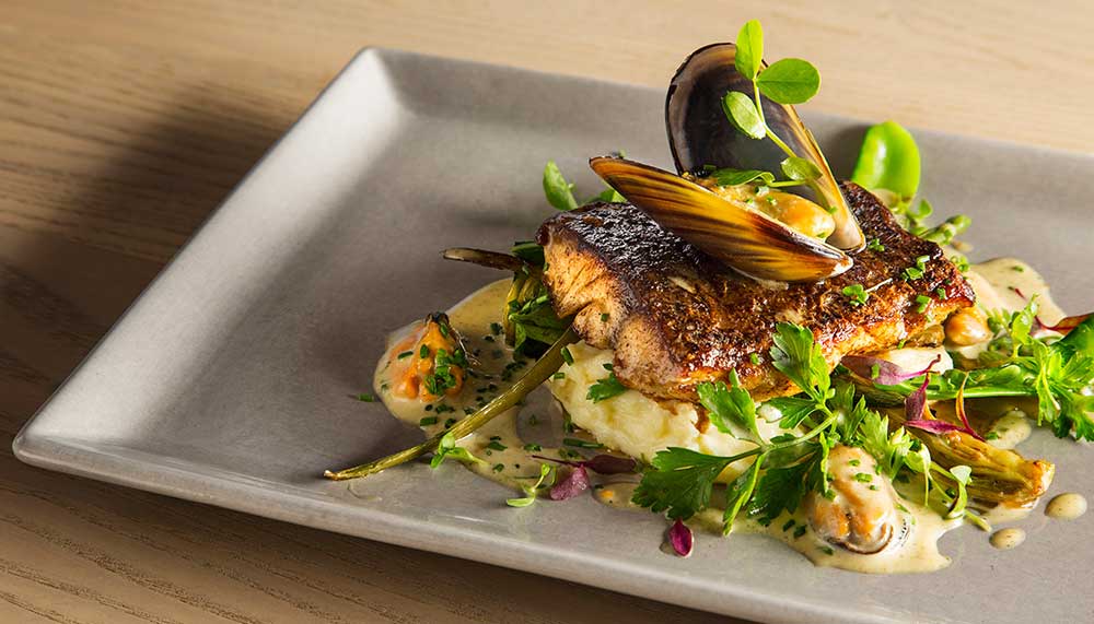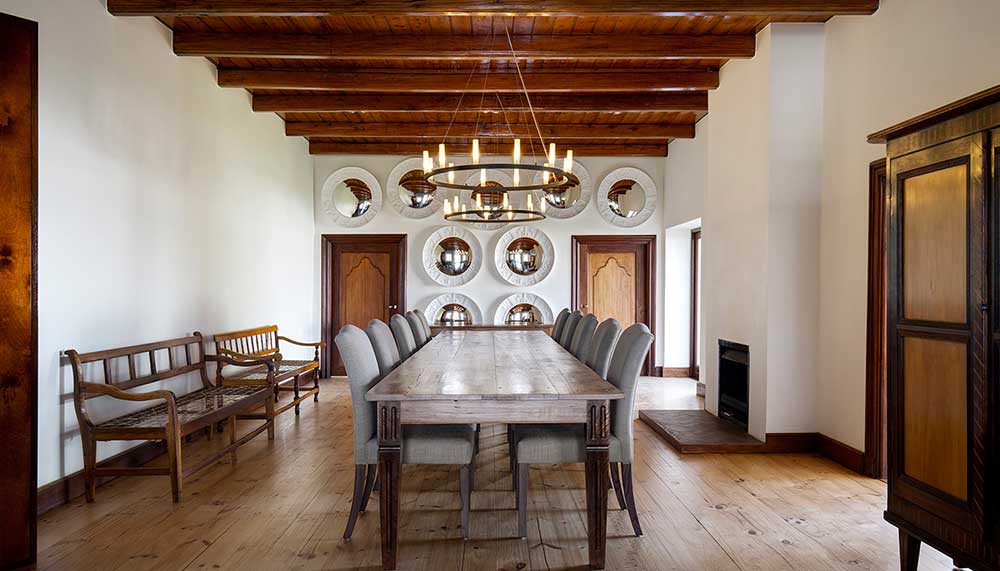 Meals naturally boast farm-to-table fresh ingredients. For light daytime choices, opt for a seat at the open-air tea garden, which serves cakes and sandwiches. For a proper meal, head to the gable-style farm shed (redesigned by Steyn), which houses the Bosjes Kombuis restaurant. Inside, one of South Africa’s most celebrated chefs, Pete Goffe-Wood, has created a menu of rustic contemporary fare amidst an industrial array of stone, concrete, wood, high-ceilings, and glass walls that immerse diners in majestic mountain views.