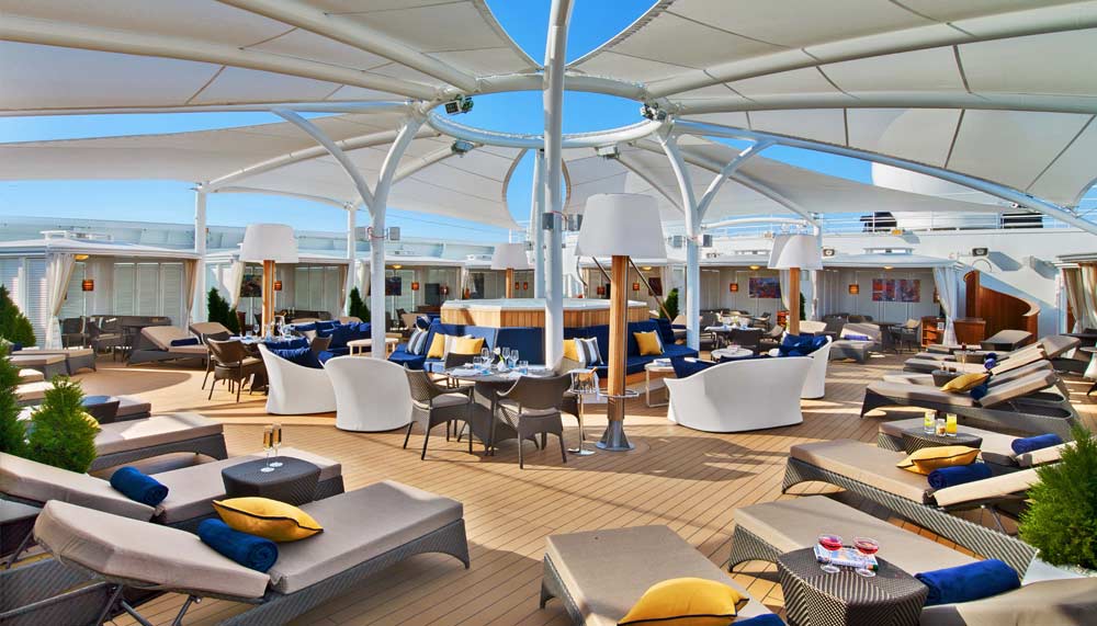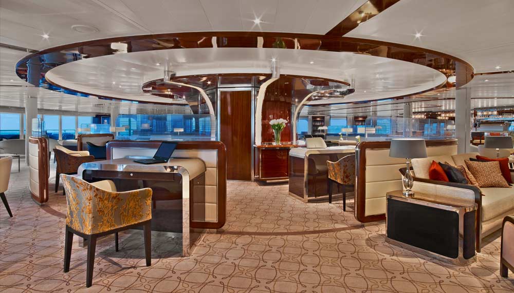Most notable, perhaps, is the ship’s all-suite accommodations. With 12 suite categories offering between 251 to 1,306 square feet of indoor living space — plus up to 906 additional square feet on the outdoor veranda — each of the 300 suites carries a range of high-tech entertainment features, spacious marble bathrooms supplied with Hermes, L’Occitane, and Molton Brown amenities, and a complimentary in suite-bar and refrigerator stocked with items reflective of each guest’s preferences.
