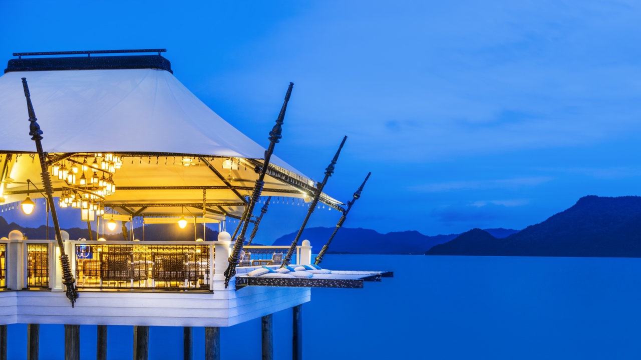 A dip in the glistening Andaman Sea or the outdoor infinity pool awaits on the resort’s private beach, with a few of several islands on the horizon, including the recognisable Dayang Bunting or ‘Pregnant Maiden’.