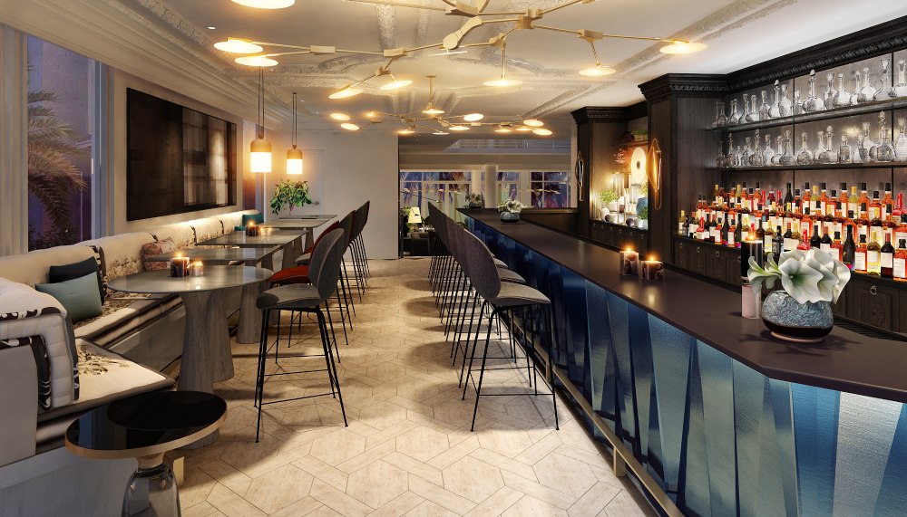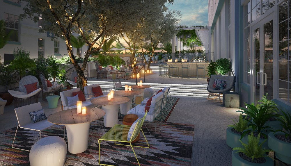 A slick horseshoe cocktail bar stands in the lobby alongside verdant greenery, vibrant colours and eclectic custom-made furniture, while the rooftop pool provides an unbeatable view of the beach and the world-famous Ocean Drive. Do bring your best swimwear along – the exclusive, intimate pool has a peekaboo glass bottom visible from the Atrium below, which means that poolside glamour is compulsory for all.