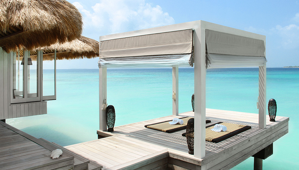 Billionaires or Bond villains requiring just a tad more privacy and exclusivity, however, will find it a short dhoni-ride away at CBR’s Owner’s Villa (price upon request), a sprawling megamansion situated on a private island. Surrounded by white-sand beaches is a main house, comprising three living rooms, a dining room, bar, private office, gym, three en-suite bedrooms and a 25m-long pool. A separate, fully self-contained guest villa is next door, while a short sandy stroll will take you to the ocean-facing outdoor dining area and a private spa, where therapists administer exclusive Guerlain treatments.