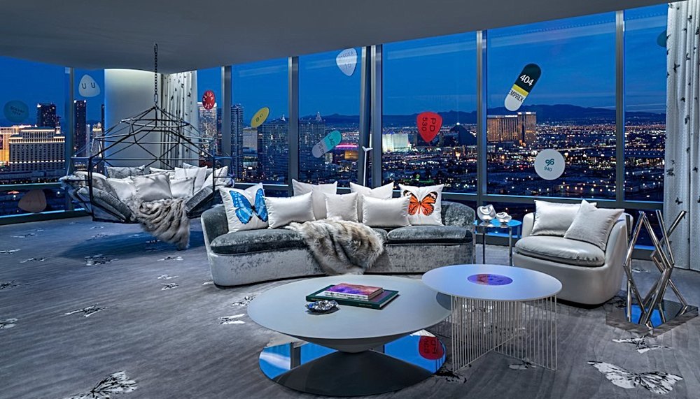If you’ve ever stood in front of a Damien Hirst piece and wondered what it must be like inside the artist’s head, today is officially the day to find out. The British contemporary artist—famous for sensational, and often controversial, works like his animal carcasses suspended in vats of formaldehyde and glittering diamond-encrusted human skull—has unveiled his Empathy Suite, an ultra-high-rolling addition to the Sky Villas collection at Las Vegas’s the Palms Casino Resort.