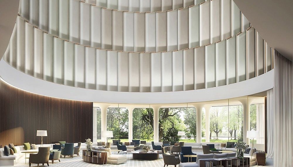 Resembling three interlocking circles and covered with thousands of white porcelain tiles that reflect the shimmering waters of Lake Alster, the Fontenay, will debut in the German city of Hamburg this fall. The Leading Hotels of the World property will be the first five-star hotel to debut in the European city in 18 years.