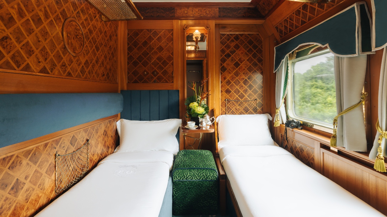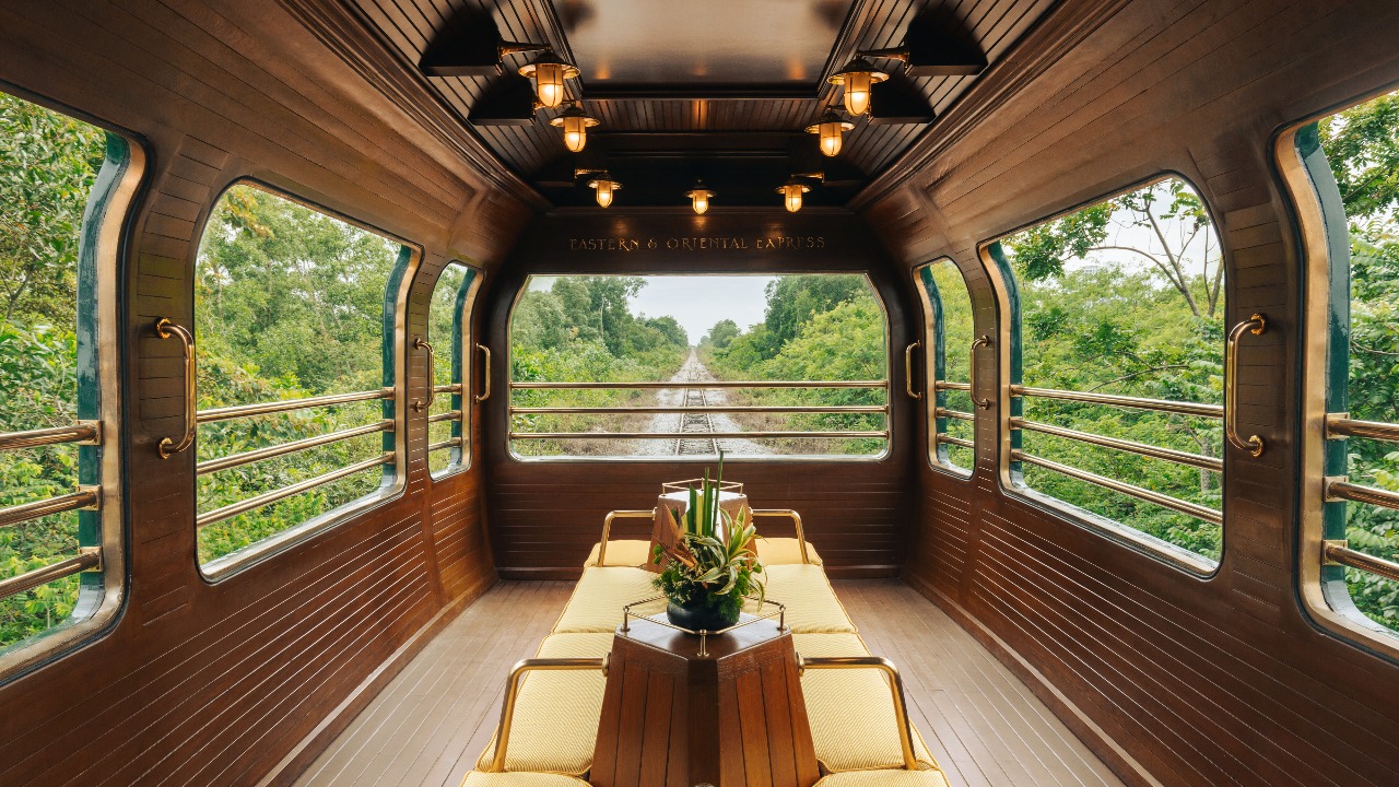 In 2024, the Eastern and Oriental Express underwent another transformation, resuming its journeys with 15 restyled carriages, consisting of eight sleeping cars, two restaurant cars, a chic piano bar car, and an open-air observation car. The vibrant effervescence of Southeast Asia is captured through exquisite details. The luxurious spaces spark a sense of old-world charm, embellished with cherrywood panelling and ornate marquetry, while rich silks add an extra layer of opulence to complete the ambience.