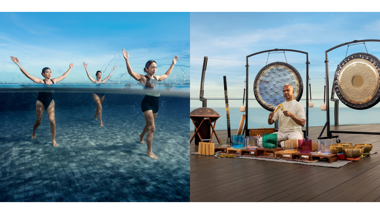 Intended to nurture your holistic well-being, the Where Mind & Body Connect wellness programme is a series of in-house classes that welcome participants of all fitness levels. Among the series’ highlights is the sound meditation session, which uses the resonance of binaural beats and solfeggio tones to heighten our state consciousness—an effective practice for anyone coping with anxiety or stress, promoting mental clarity and physical healing. Additional classes include soul flow, hatha yoga, vinyasa yoga, aqua fit, and Pilates. These classes are held at the SkyPark Observation Deck on level 56 of Hotel Tower 3 and are open to both hotel guests and the public. Book your classes now.