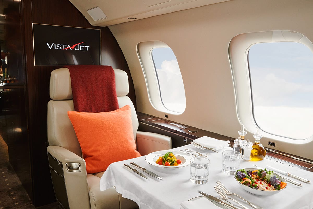 “VistaJet cabins are intentionally designed to separate work, dining, and rest zones, helping you stay focused and feel refreshed upon landing—consider asking your Cabin Host to serve your meal at a separate table, allowing for a brief mental reset.
