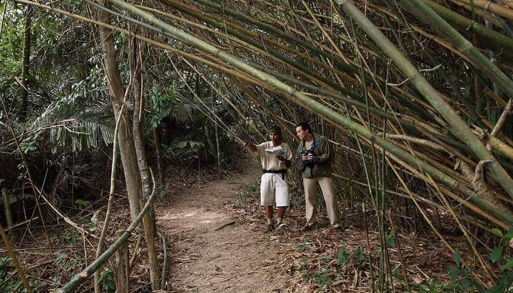 At sunrise, guests are invited to indulge in the daily sucimurni stretching exercises, with the calisthenics varying based on the animal chakra of the day. Then it is off to breakfast, where the usual smorgasbord of options are interspaced with delicacies native to the East Coast – nasi dagang, rice double-steamed in coconut milk and fenugreek seeds, served with a creamy curry made from tuna, ubiquitous along this coast of Malaysia. In the evening, the restaurant – Di Atas Sungai, or On The River – eliminates menus, instead prompting a conversation between chef and client where ingredients are chosen and cooking methods recommended.