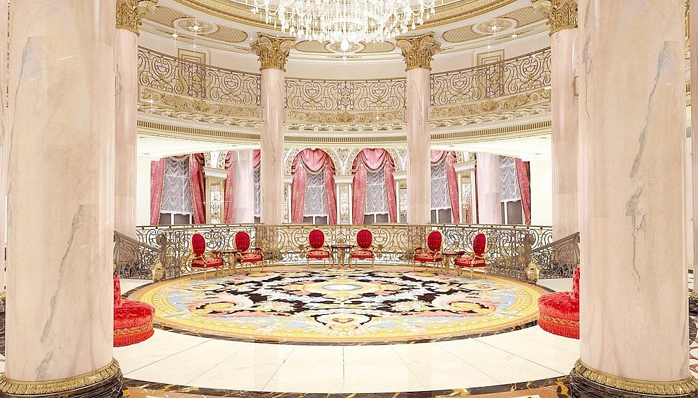 with 24-Karat Gold ceilings, 6,400 chandeliers and a 2.3km private beach, this new hotel is opulence personified