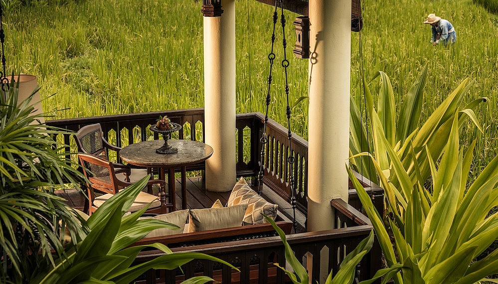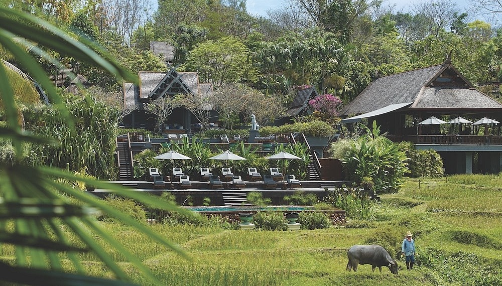 The 98-room property is designed in the style of a traditional Mae-Rim village. It comprises 20 acres of land, an undulating mix of rice terraces and landscape gardens. An afternoon highlight: a procession of village farmers through the resort signalling the end of a day working the fields.