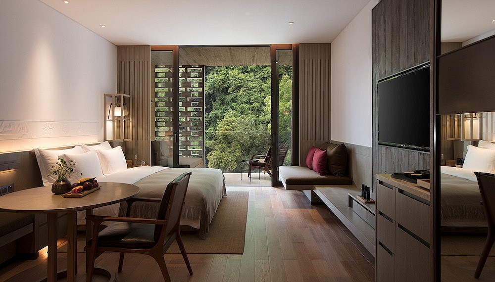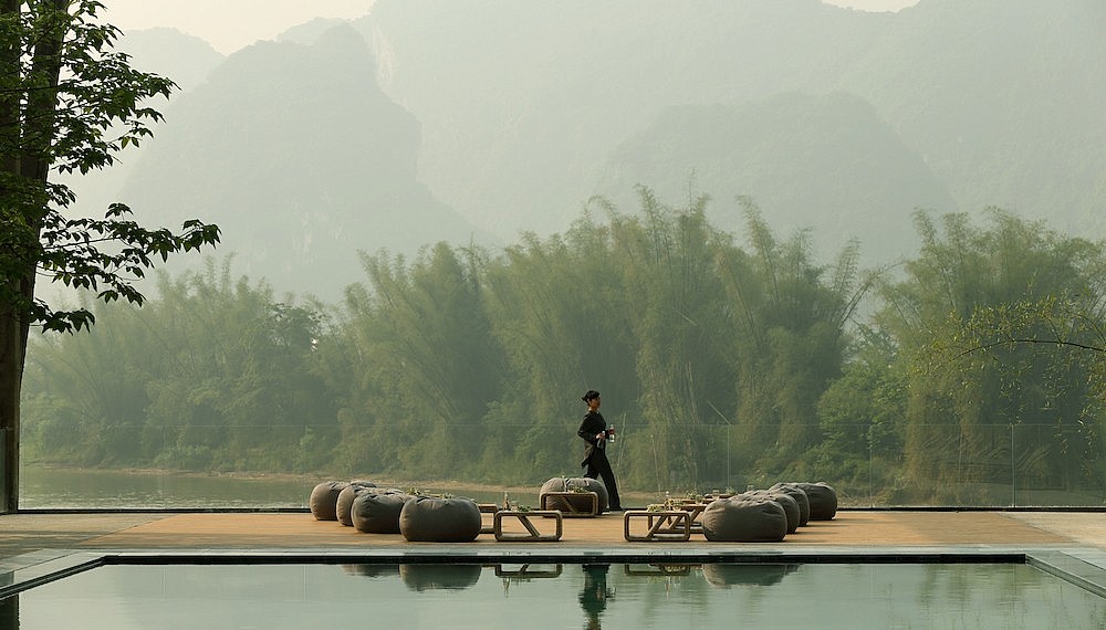 Life is sweet at the newly-opened Alila Yangshuo. Literally. Housed in a restored sugar mill, the latest Alila resort has retained as much of the 1960s factory architecture as possible, marrying it with modern amenities for a retro-throwback luxury experience. Designed by Dong Gong of Vector Architects and Ju Bin of Horizontal Space Design, the original elements of the Communist-era building take prominence. The sombre, brown-brick exterior has been retained, with rare touches of original adornments – like delightfully ornate air vents (some carved to resemble Chinese characters). In a more metamorphic touch, the original sugarcane dock jutting out the Yulong river is the the site of the swimming pool, flanked by the factory’s original steel pillars.