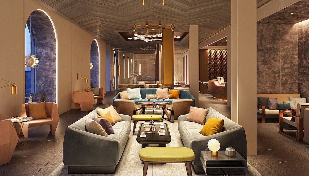 The accommodations will showcase understated charm (think expansive glass windows, hanging light fixtures, and subtle blue and white decor), while the bathrooms feature marble vanities and walk-in showers. Large televisions and in-room pantries further elevate the swanky yet subtle spaces. Advanced technologies ranging from keyless entry to custom mobile apps that allow guests to place dining orders and stream television shows and movies will also guarantee a sophisticated experience.