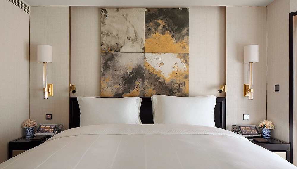 Chinese art plays a more prominent role in the Peninsula’s lobby, where a new three-story white-marble staircase is flanked by abstract ink paintings by Qin Feng and a pair of bronze sculptures by Zhang Du. The hotel also features revolving displays in a gallery space that links its spa and fitness center, and has launched an artist-in-residence program in conjunction with the Museum of Contemporary Art Beijing.