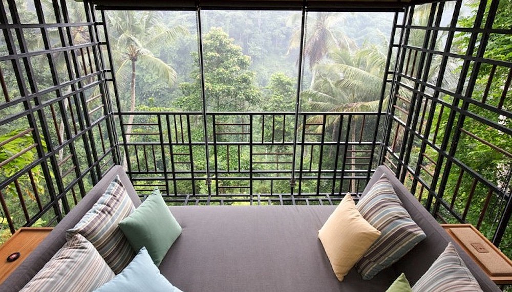 While at the resort, guests can dine on Balinese cuisine made by executive chef Makoto Miyamaguchi or undergo ancient treatments at the spa. A slew of sky-high gazebos overlook the verdant jungle, serving as ideal spaces for meditation sessions or leisurely lounges. The onsite library is stocked with books, computers, and newspapers, and a nearby terrace can accommodate yoga classes.