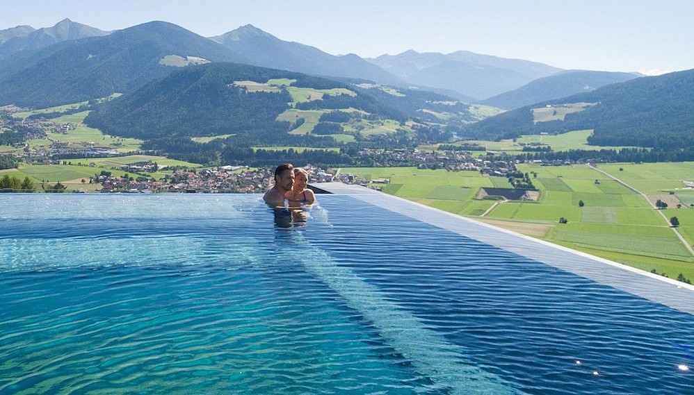 Pools have always been a selling point for hotels, leveraging unique vantage points to offer unparalleled views of, say, an urban jungle (Marina Bay Sands in Singapore), a stark desert (Amangiri in Utah) or an endless expanse of blue (almost any resort in The Maldives). Now you can add the dramatic vertices of Italy’s South Tyrolian Dolomites mountain range to that list, with a breathtaking new pool at Hotel Hubertus.