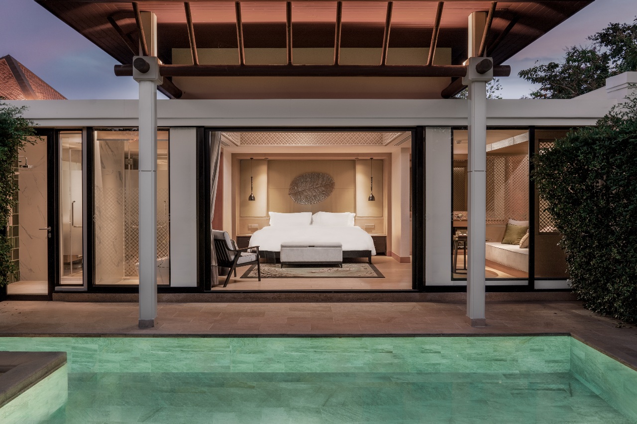 Banyan Tree Phuket’s villas are inspired by Thai architecture, with steeply inclined roofs and open-air spaces. Nestled around the saltwater lagoon of Laguna Phuket, the resort was envisioned with the concept of pool villas at its core—a vision thought out of necessity when the beachfront spaces were fully occupied by other properties. Each lavish villa has a private pool, offering guests the perfect tropical retreat with a sense of intimacy. Guests may elevate their experience by booking one of the DoublePool Villas that spans a vast 1,300sqm. Each villa is surrounded by a wading pool and a 15m infinity pool that overlooks the serene lagoon.