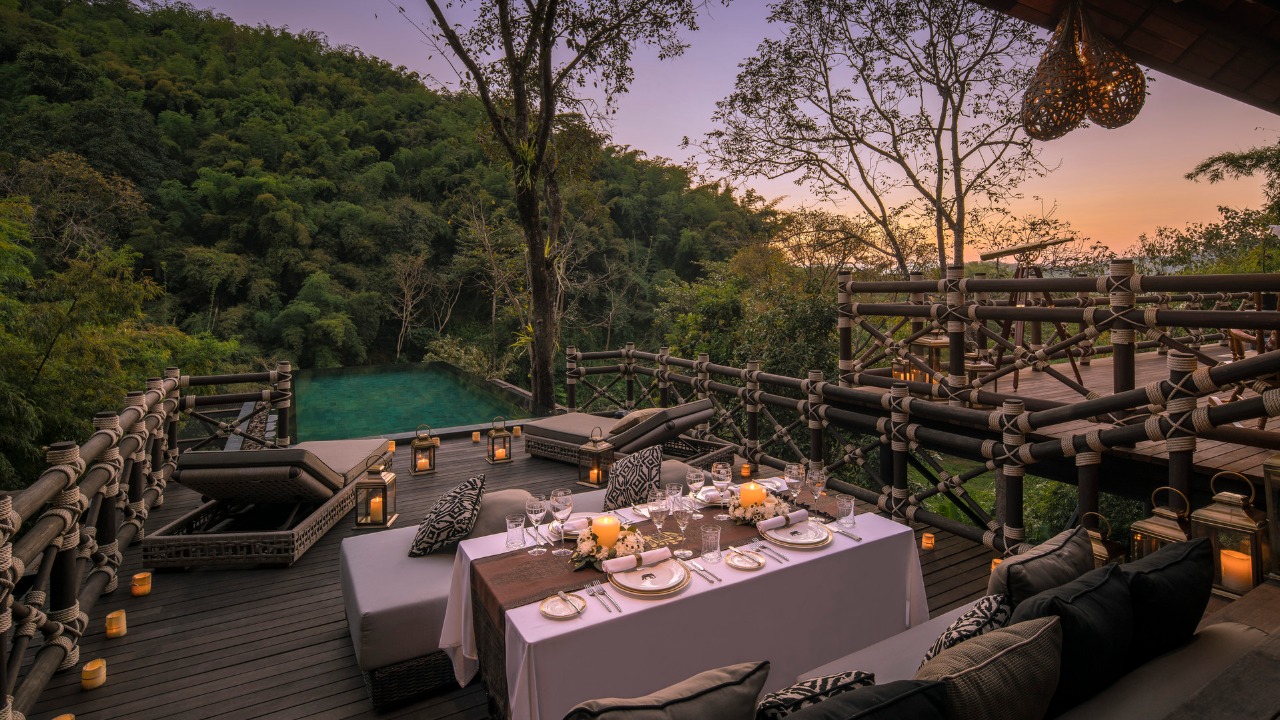 Seemingly melded into the forest, this sole Four Seasons ‘camp’ in Southeast Asia is connected through a series of walkways that meander across foliage and a suspension bridge that adds to its Hollywood blockbuster impressions.