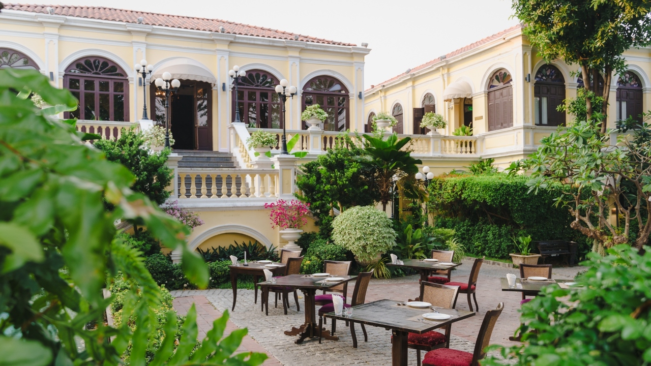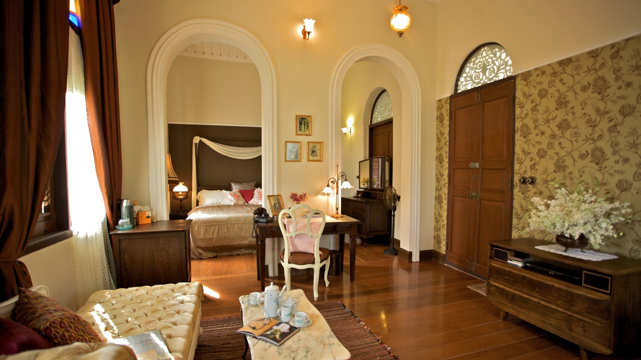 The structure is now a 15-room boutique hotel, Praya Palazzo, which retains nearly all of its original characteristics. Interiors are classically Thai-Occidental, with sunshine yellows, majestic maroons, and deep purples, and embedded with antique armoires and crystal chandeliers that take guests back in time to the 1920s.