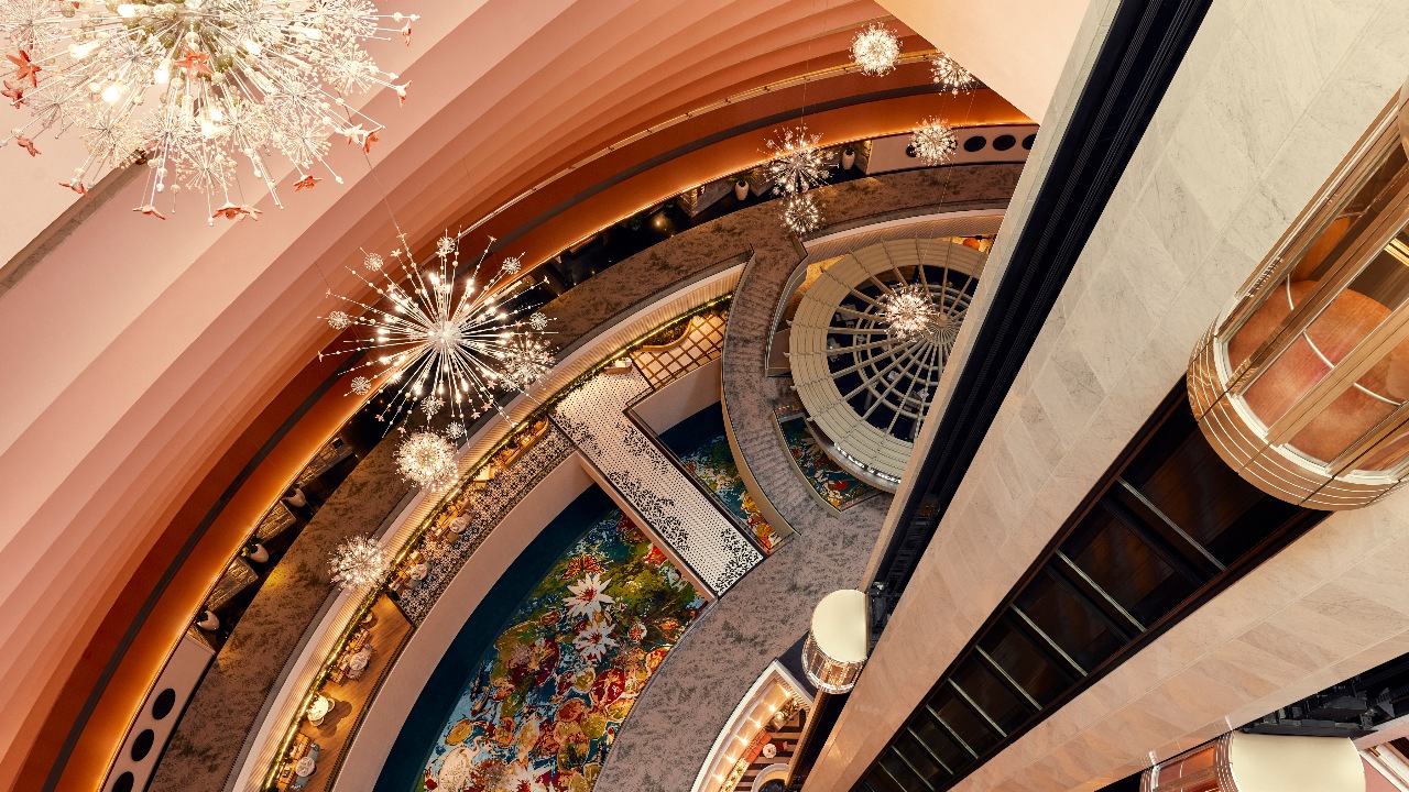 The renovation that took place added plenty of character, such as dappled batik patterns to its 510 guestroom, including the 42 suites. Seaview rooms are bathed in the warm tones of the morning sun, while those facing the city feature lush botanical prints. That garden city vision, first introduced by founding Prime Minister Lee Kuan Yew, is clearly in operation with Designwilkes’ effort to prioritise planter terraces, and with its guestrooms reborn with Chinoiserie branches and palm shadows motifs. Cerused oak fitouts offer a finishing touch for that lighter island style. Head out onto the bridges spanning across the atriums and you see dandelion-styled lighting as well as a giant swath of carpet that recalls the top-down view of a lily pond.