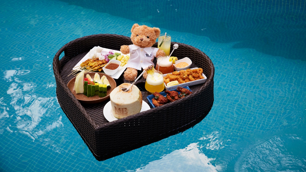 Otherwise, you can opt to dine from the comfort of your own room with the Floating Afternoon Tea—including delectable treats and refreshing beverages like fresh coconut juice, harvested from trees grown onsite—served in your private pool.