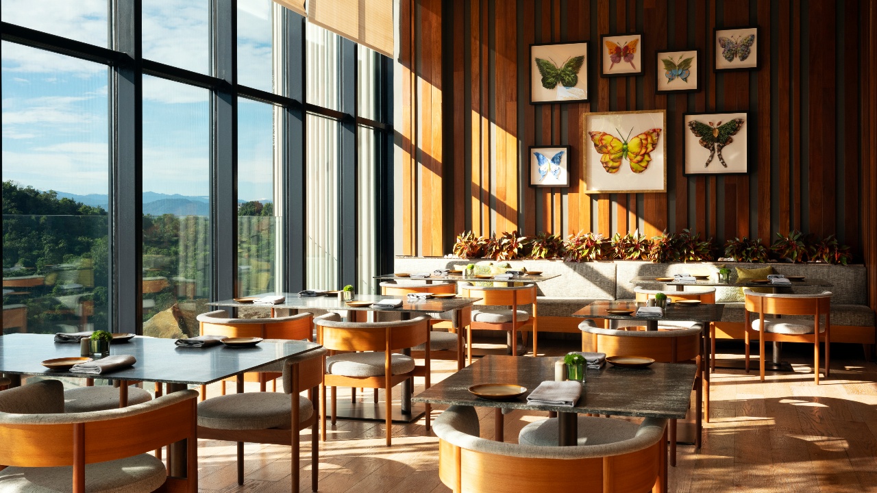 In the same way, the hotel becomes a place for locals and guests to uncover their inner artist. A weekend programme combines either wine tasting or coffee with painting sessions guided by expert artists. Artistic touches also abound across all 23 storeys, with the lobby displaying a grand hand-carved wood sculpture of rare Rafflesia flowers by Malaysian artist Anniketyni Madian. Throughout the property, the artworks range from a philosophical musing of stacked teapots at the hotel’s conference rooms to seashell-encrusted wall panels and a multitude of butterfly shaped paper cuts and prints by multidisciplinary Tokyo artist Raku Inoue.
