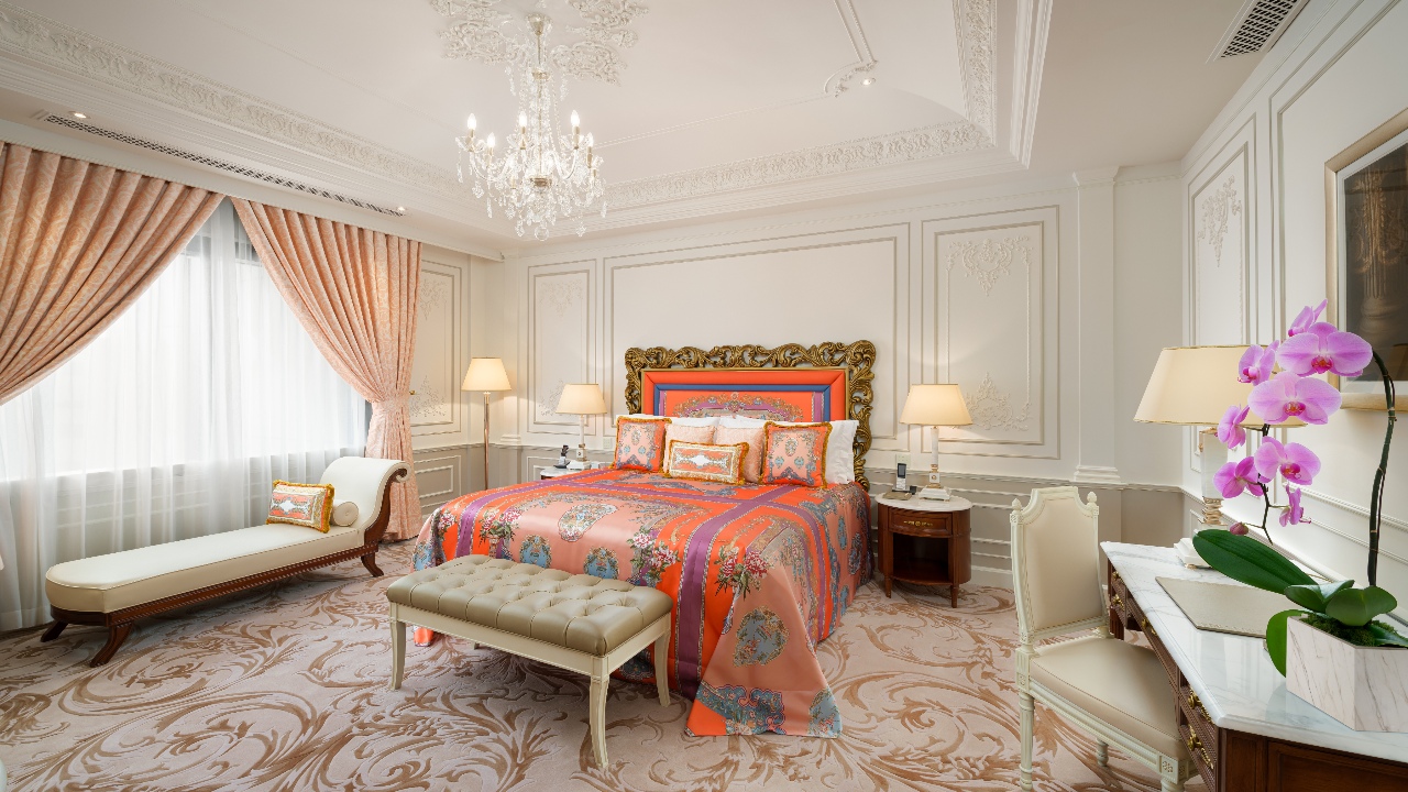 Palazzo Versace Macau is the first Palazzo Versace luxury hotel in Asia and second worldwide following Palazzo Versace Dubai. The hotel boasts 271 rooms and suites across 12 floors, each infused with Versace’s Milanese heritage and adorned with the brand’s signature flair. The codes of the brand are prominently showcased throughout, featuring the Medusa, geometric Greca motif and Barocco print alongside Chinese symbols of the chrysanthemum flower and ornate dragon, which are unique to Palazzo Versace Macau. During the grand opening, guests were welcomed by none other than the celebrated fashion designer, Donatella Versace herself.