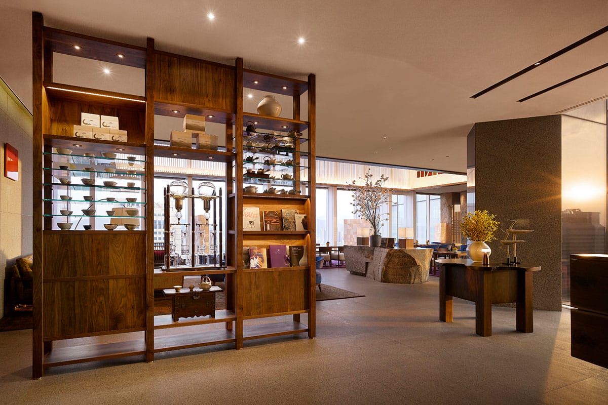 At Park Hyatt Seoul, a butler is on hand to guide you to the 24th-floor sky lobby—a floating haven that buffers the city’s pulse below without compromising its panoramic view. Here, you will not find gilded chandeliers or grand palatial entrances. Despite the property’s striking façade, its interiors give way to a quieter form of luxury. Under the direction of Super Potato, a Japanese design studio, elemental materials, such as stone, wood, and water, are utilised to cultivate a calming, Zen-like retreat.